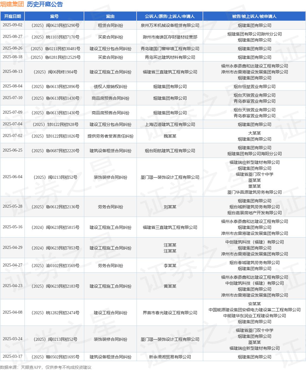 本站消息,根据天眼查APP显示,近日公布了一则烟建集团有限公司作为被告/被上诉人的开庭公告,详细内容如下: